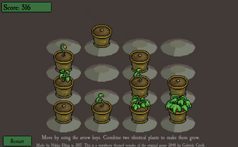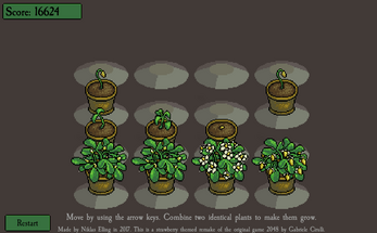 Use arror keys or WASD to move. When two identical plants are merged together they grow to the next stage. Grow them until the berries are ready to eat.
